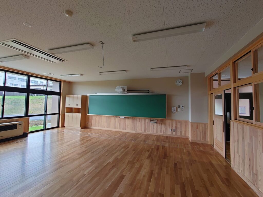 新校舎のフローリングには、野田村産のナラ材が使われています。